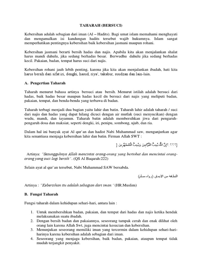 Rpp M1kb3 from imgv2-2-f.scribdassets.com Air ini adalah air bekas menyucikan hadas dan najis. Benarkah terdapat 2 pendapat ,yaitu pendapat imam nawawi yang menyatakan bahwa menghilangkan hadas dan najis cukup dengan sebasuhan, sedangkan pendapat imam syafii menyatakan tidak cukup. Berikut adalah dalil dalilnya.dalil ini adalah firman allah ta'ala Najis ini adalah najis yang berat mensucikannya. Misalnya, ketika dalam satu waktu kita kentut, kemudian buang air kecil dan buang air besar, maka tidak harus menghilangkan hadats tersebut satu per satu, melainkan langsung sekaligus. Benda yang terkena najis · najis 'ainiyah, yaitu najis yang masih ada zat, warna, rasa, dan baunya, kecuali warna atau bau yang sangat sukar menghilangkannya, sifat ini dimaafkan. Walaupun air ini tidak berubah rasanya, warnanya, serta baunya, bahkan sebenarnya air ini masih bersih dan suci. Contoh dari najis ini adalah najis anjing dan babi.